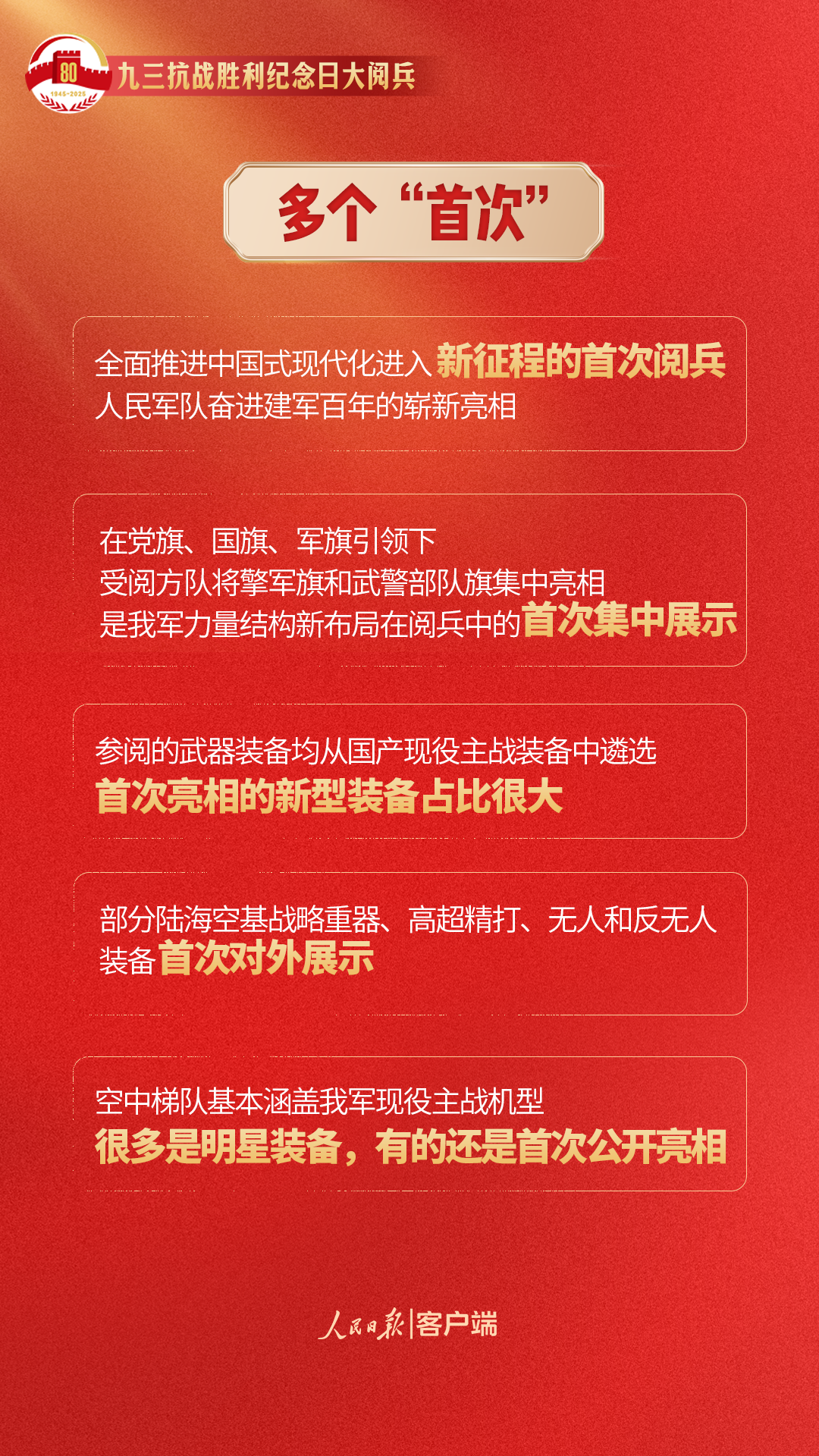 今年九三阅兵是纪念中国人民抗日战争暨世界反法西斯战争胜利80周年活动的重要组成部分。我们以盛大阅兵纪念抗战伟大胜利,就是要铭记历史、缅怀先烈、珍爱和平、开创未来。